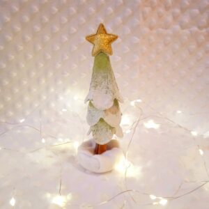 Idéal pour décorer une table, une étagère ou un petit espace, ce sapin allie créativité, recyclage et esprit festif. Une décoration originale qui raconte une histoire et valorise l’artisanat.